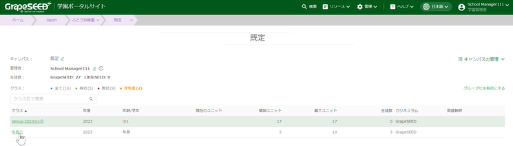 - 最後に、クラス情報が正しく登録されているか確認します。上部メニューバーでクラス名をクリックし、